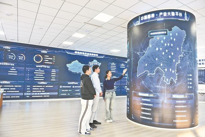 景县制造业数字化转型促进中心工作人员在介绍产业大脑平台运行情况。高雷 摄