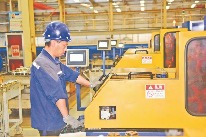 在河北西伯力特种橡胶有限公司车间,工人通过工控机操控作业。高雷 摄