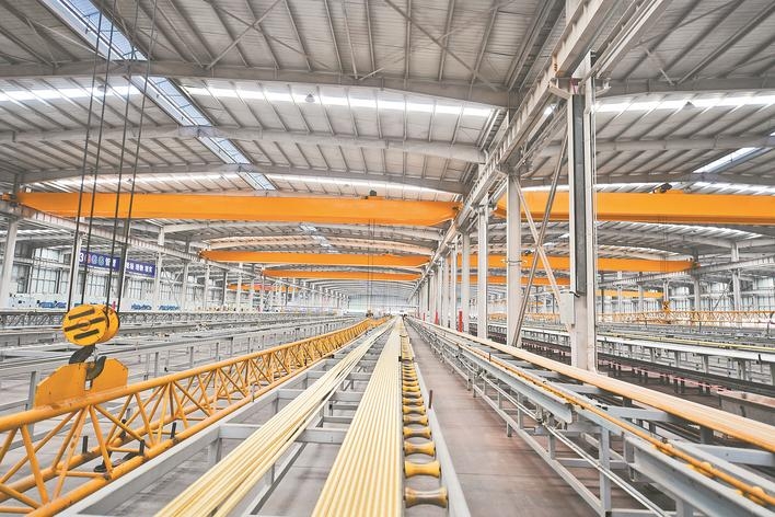 景县卓凡液压科技有限公司的120米超长高压胶管自动化生产线。高雷 摄
